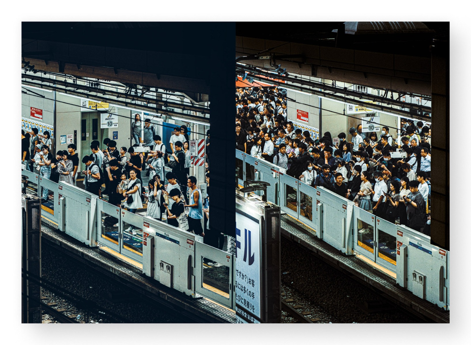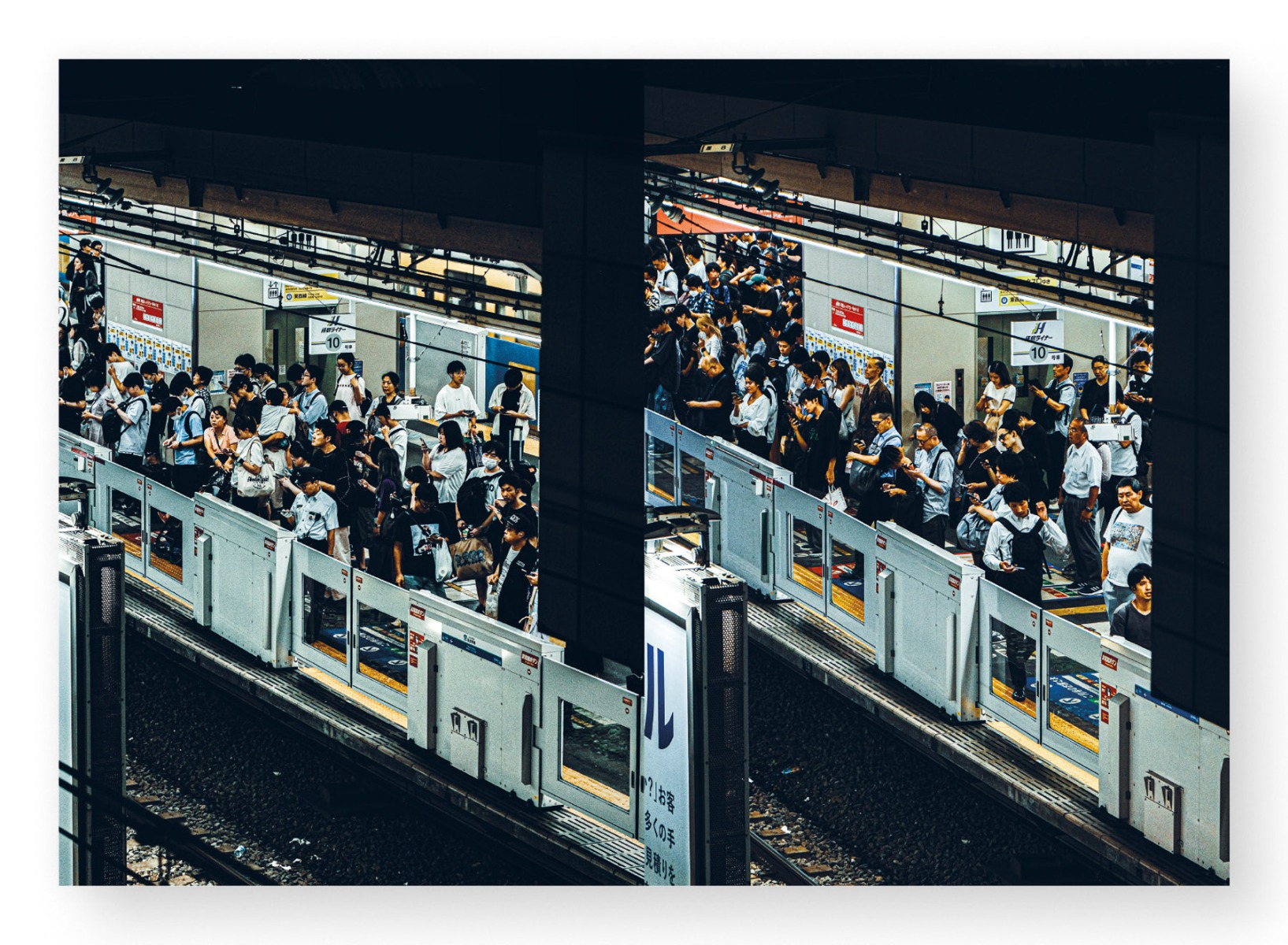 Ogni sera, sulla banchina della stazione di Takadanobaba, tante persone guardano nella stessa direzione. Hanno finito lavori diversi, tornano a case diverse e hanno pensieri diversi. Ma sulla banchina, queste differenze svaniscono. Sono semplicemente uno dei tanti nella folla. Questa scena mi ha colpito. Le innumerevoli storie che prima li definivano come individui perdono il loro significato nel momento in cui salgono sulla banchina. Anche attraverso il mio obiettivo perdono la loro individualità. Dopo aver scattato le foto, anch’io resto lì, in attesa del treno che mi riporterà a casa. — Karlkanitrunk